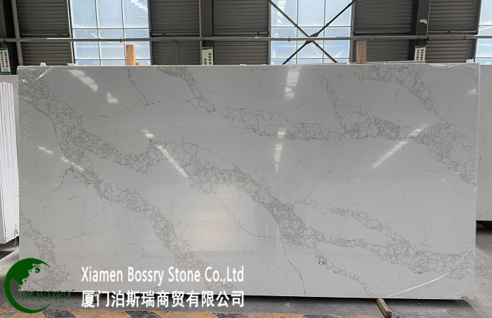 | Item No.: Standard size 3200x1600mm Calacatta white quartz slab (BST-CAL18) |