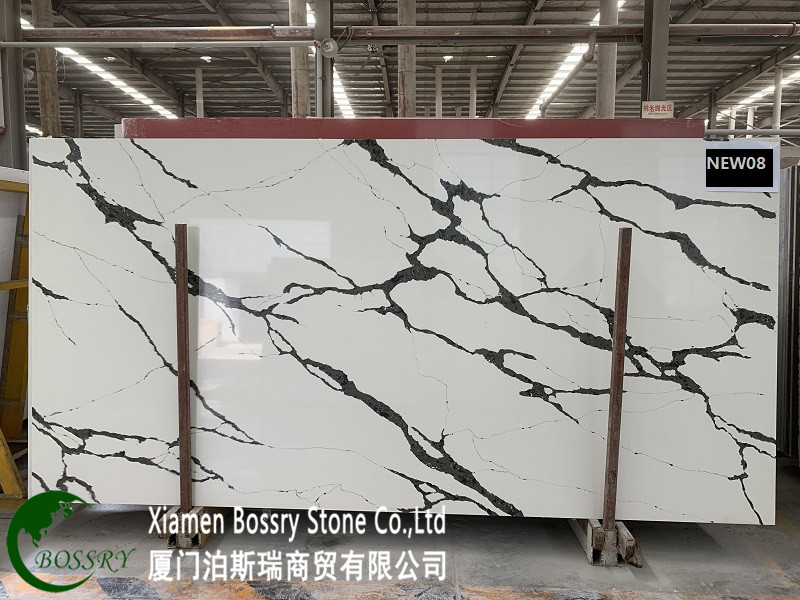 | Item No.:White Base Black Vein Quartz Slabs(BST-NEW08) |